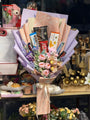 Make her day sweeter with this adorable pink-themed bouquet! Packed with favorite treats including KitKat, Dairy Milk, Hershey’s, and Ferrero Rocher, it also features a cute pink teddy bear and soft faux peonies. Beautifully wrapped in blush pink marble paper, this is the ultimate gift for birthdays and anniversaries.