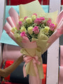 A soft and graceful bouquet of pink and cream roses beautifully wrapped in pastel pink and beige paper, finished with a satin bow. This arrangement radiates calmness and affection ideal for birthdays, engagements, or sweet surprises that say âyouâre loved.â
